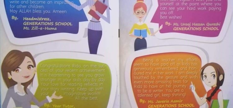 Rida Zehra Jafri d/o Samer Iqbal Jafri is an immensely talented young writer and author of ‘Rida’s Diary’-a book based on her life experiences. Rida was only 10 when she penned the book and is currently a grade 9 student at the Generations School.